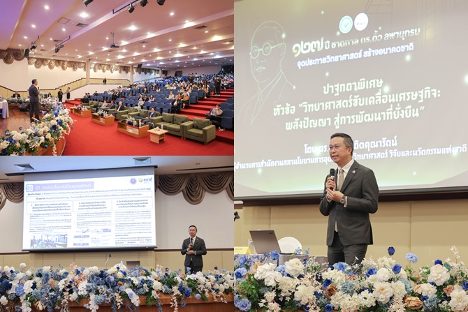 เมื่อวันที่ 23 ตุลาคม 2568 ดร.สุรชัย สถิตคุณารัตน์ ผู้อำนวยการสำนักงานสภานโยบาย การอุดมศึกษา วิทยาศาสตร์ วิจัย และนวัตกรรมแห่งชาติ (สอวช.) กล่าวปาฐกถาพิเศษในหัวข้อ “วิทยาศาสตร์ขับเคลื่อนเศรษฐกิจ : พลังปัญญา สู่การพัฒนาที่ยั่งยืน” ในงานสัมมนาเชิงวิชาการ “127 ปี ชาตกาล ดร.ตั้ว ลพานุกรม : จุดประกายวิทยาศาสตร์ สร้างอนาคตชาติ” จัดโดย มูลนิธิ ดร.ตั้ว ลพานุกรม ร่วมกับ กรมวิทยาศาสตร์บริการ (วศ.) ณ ห้องประชุมภูมิบดินทร์ ชั้น 6 อาคารสถาบันพัฒนานักวิทยาศาสตร์ กรมวิทยาศาสตร์บริการ