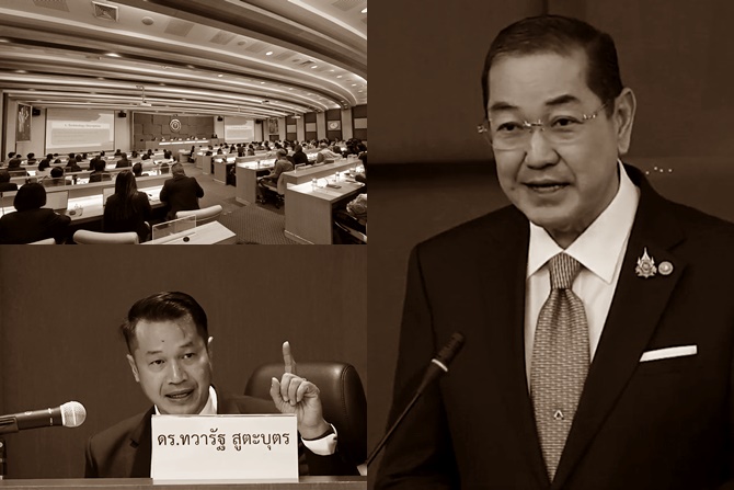 ดร.สุรเกียรติ กล่าวว่า โลกในปัจจุบันกำลังเผชิญการเปลี่ยนระเบียบโลกใหม่ (The New Global Order) ที่เกิดจากแรงปั่นป่วนระดับโลก (Global Disruptions) ในหลายมิติ ทั้งเทคโนโลยี เศรษฐกิจ สิ่งแวดล้อม การเมือง และความมั่นคง ซึ่งกำลังเร่งให้ทุกประเทศต้องปรับตัวเชิงรุกเพื่อความอยู่รอดและความมั่นคงในอนาคต โดยหยิบยก 10 ความปั่นป่วนระดับโลก ได้แก่ 1. Technology Disruption เกิดการเปลี่ยนแปลงทางเทคโนโลยีและ AI ที่รื้อโครงสร้างเศรษฐกิจและการทำงานของมนุษย์ ต้องใช้ควบคู่ “Critical Thinking” 2. Demographic Disruptionการเข้าสู่สังคมสูงวัย (Aged Society) เปิดทางสู่ “Care Economy” และ “Longevity Economy” 3. Pandemic Disruption เกิดวิกฤตสุขภาพทั่วโลกเร่งให้เกิดแนวคิด “Health Equity” และการสร้างความมั่นคงทางสุขภาพ (Health Security) 4. Environmental Disruption จาก Climate Change สู่ Climate Crisis และ Climate Catastrophe ผลักดันสู่เศรษฐกิจสีเขียวและนโยบาย ESG 5. Education Disruption การเรียนรู้ต้องเปลี่ยนจากการท่องจำเป็น “Action Learning” และ “Intergeneration Dialogue”