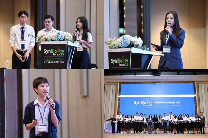 อีกหนึ่งกิจกรรมไฮไลต์ของงานปีนี้คือการแข่งขัน Thailand SynBio Challenge 2025: Designing the Protein for Tomorrow ที่เปิดเวทีให้นักศึกษาและนักวิจัยรุ่นใหม่จากทั่วประเทศ นำเสนอแนวคิดด้านชีววิทยาสังเคราะห์เพื่อออกแบบโปรตีนแห่งอนาคตที่ตอบโจทย์อุตสาหกรรมและความยั่งยืน โดยมีผู้สนใจเข้าร่วมส่งไอเดียประกวดกว่า 29 ทีม และมีทีมที่ผ่านการคัดเลือก จำนวน 9 ทีม จากมหาวิทยาลัยเกษตรศาสตร์ มหาวิทยาลัยมหิดล โรงเรียนกำเนิดวิทย์ มหาวิทยาลัยพะเยา โรงเรียนนิวตัน (The Newton Sixth Form School) จุฬาลงกรณ์มหาวิทยาลัย มหาวิทยาลัยธรรมศาสตร์ โรงเรียนสวนกุหลาบวิทยาลัย รังสิต และมหาวิทยาลัยเทคโนโลยีพระจอมเกล้าธนบุรี โดย