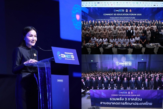 เมื่อวันที่ 19 พฤศจิกายน 2568 เวลา 9.00 น. ศ.ดร.นฤมล ภิญโญสินวัฒน์ รัฐมนตรีว่าการกระทรวงศึกษาธิการ (รมว.ศธ.) ร่วมงาน CONNEXT ED EDUCATION FORUM 2025: Thailand’s Education Future อนาคตการศึกษาไทย อนาคตประเทศไทย รวมพลังความร่วมมือ 3 ภาคส่วน ระยะที่ 4 มุ่งสู่อนาคตการศึกษาไทยที่ยั่งยืน จัดโดย มูลนิธิสานอนาคตการศึกษา คอนเน็กซ์อีดี นำโดย องคมนตรี พลเอก ดาว์พงษ์ รัตนสุวรรณ ในฐานะประธานที่ปรึกษากิตติมศักดิ์ ตลอดจนคณะที่ปรึกษาและผู้ทรงคุณวุฒิจากภาครัฐ ภาคประชาสังคม และภาคเอกชน โดย นายศุภชัย เจียรวนนท์ ประธานคณะผู้บริหาร เครือเจริญโภคภัณฑ์ และประธานกรรมการ บมจ. ทรู คอร์ปอเรชั่น ในฐานะประธานคณะกรรมการบริหารมูลนิธิฯ พร้อมด้วยซีอีโอ คณะผู้บริหารจากองค์กรผู้ร่วมก่อตั้ง และพันธมิตร เข้าร่วม ณ ห้องประชุมแกรนด์ฮอลล์ ชั้น 3 อาคารทรู ดิจิทัล พาร์ค (ฝั่ง West)
