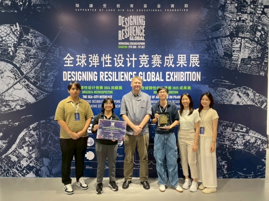 ท่ามกลางภาวะโลกที่ร้อนขึ้นและน้ำทะเลที่สูงขึ้นทุกปี หลายเมืองทั่วโลกกำลังถูกทดสอบและต้องหาคำตอบให้ได้ว่า “เมืองจะอยู่ร่วมกับธรรมชาติได้อย่างไรให้ยั่งยืน” นี่คือคำถามที่ทีมนักศึกษาชั้นปีที่สี่ 12 คนจากคณะสถาปัตยกรรมศาสตร์และการออกแบบ มหาวิทยาลัยเทคโนโลยีพระจอมเกล้าธนบุรี (มจธ.) ลงมือค้นหาจนได้คำตอบเป็นผลงาน “Rooted Currents” ที่สามารถคว้ารางวัลชนะเลิศระดับนานาชาติ Climate Resilience Urban Design Excellence Award จากเวที Designing Resilience Globally (DRG) 2025 ณ เมืองกวางโจว สาธารณรัฐประชาชนจีน ด้วยแนวคิดอันแตกต่างที่ไม่ได้เข้าไปจัดการธรรมชาติแต่ “อยู่ร่วมกับกระแสน้ำและรากฐานวัฒนธรรม” จนนำไปสู่การสร้างผังเมืองที่มีชีวิต และอยู่ได้อย่างมั่นคงในโลกปัจจุบัน
