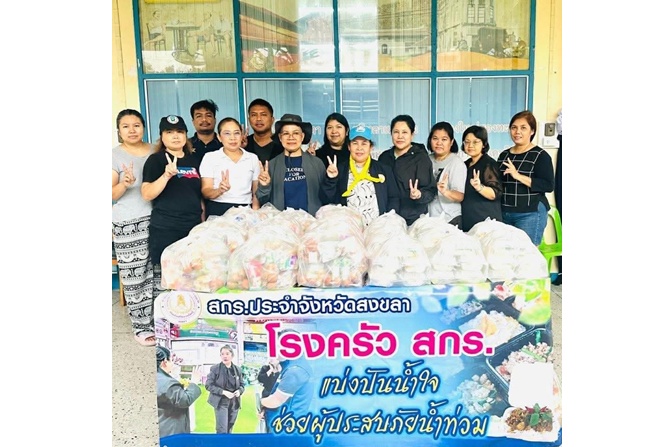 "สกร. ปันน้ำใจ ช่วยภัยน้ำท่วม" ระดมเจ้าหน้าที่ สกร.สงขลา และสถาบัน สกร.ภาคใต้ ตั้งโรงครัว ปันน้ำใจ จัดทำอาหารกล่องปรุงสุก เพื่อแจกจ่ายผู้ประสบภัยน้ำท่วม