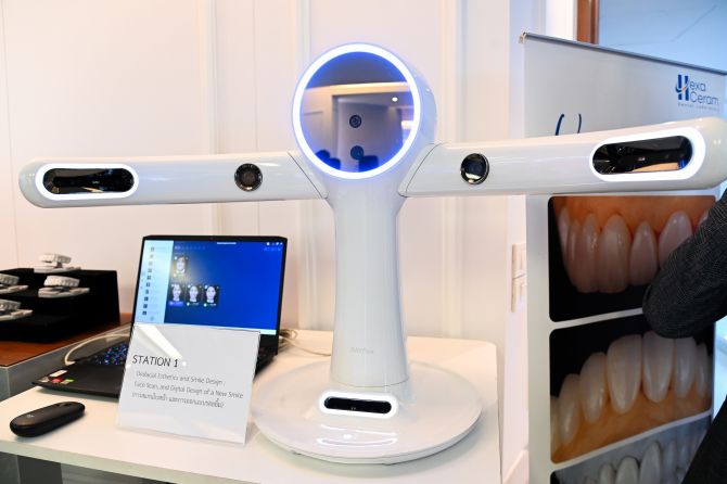 จากนั้น Assoc. Prof. Dr. Nikos Mattheos ผู้อำนวยการฝ่ายวิชาการ และ Assoc. Prof. Martin Schittek Janda จาก Malmö University ประเทศสวีเดน ได้กล่าวแนะนำรายละเอียดของหลักสูตร และจัดให้มีการสาธิตและทดลองใช้จริงเทคโนโลยีทันตกรรมดิจิทัล 4 ไฮไลต์ ประกอบด้วย