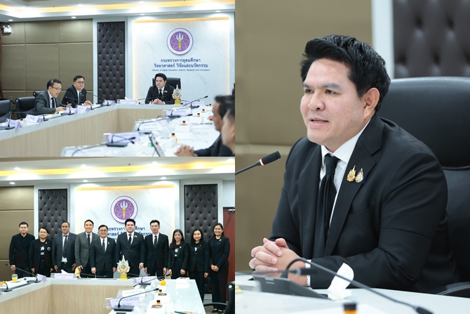 วันที่ 2 ธ.ค. 2568 นายสุรศักดิ์ พันธ์เจริญวรกุล รัฐมนตรีว่าการกระทรวงการอุดมศึกษา วิทยาศาสตร์ วิจัยและนวัตกรรม (อว.) และ ศ.ดร.วิเลิศ ภูริวัชร อธิการบดีจุฬาลงกรณ์มหาวิทยาลัย ประธานที่ประชุมอธิการบดีแห่งประเทศไทย (ทปอ.) ร่วมแถลงข่าว “เลื่อนสอบ TGAT/TPAT2-5 ในพื้นที่ที่ได้รับผลกระทบจากน้ำท่วมในพื้นที่ภาคใต้” โดยมี ศ.ดร.ศุภชัย ปทุมนากุล ปลัดกระทรวง อว., นางสาวพิมพ์พร ชีวานันท์ เลขานุการ รมว.อว., นายวันนี นนท์ศิริ หัวหน้าผู้ตรวจราชการกระทรวง อว., นางเพ็ญนภา กัญชนะ ผู้ตรวจราชการกระทรวง อว. , ดร.พันธุ์เพิ่มศักดิ์ อารุณี ผช.ปลัดกระทรวง อว., รศ.ดร.ชาลี เจริญลาภนพรัตน์ ผู้จัดการระบบ TCAS69 เข้าร่วม ณ ห้องประชุมชั้น 4 อาคารพระจอมเกล้า สป.อว.