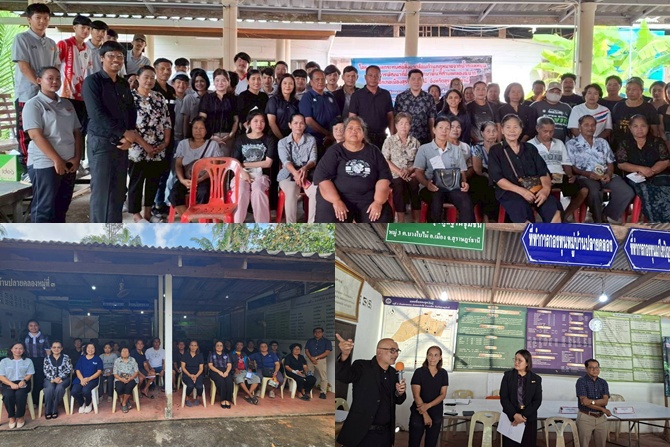 อีกหนึ่งพื้นที่เป็นโครงการสร้างการมีส่วนร่วมของคนในชุมชนท้องถิ่นในการบริหารจัดการทรัพยากรธรรมชาติและสิ่งแวดล้อมอย่างสมดุลและยั่งยืน ภายใต้กิจกรรมการรับฟังปัญหาการมีส่วนร่วมของคนในชุมชนท้องถิ่นเกี่ยวกับทรัพยากรธรรมชาติและสิ่งแวดล้อมอย่างสมดุลและยั่งยืน ณ ศาลาประชาคมหมู่บ้าน บ้านปลายคลอง ม.3 ต.บางใบไม้ อ.เมืองสุราษฎร์ธานี จ. สุราษฎร์ธานี โดย ผศ.จุไรพร ชีพประสพ, ผศ.สุชาดา ศรีใหม่, ผศ.ดร. พรวิไล อุ้ยดำรงธรรม, รศ.สิทธิกร ศักดิ์แสง, ผศ.ดร.ภูภณัช รัตนชัย และน.ส.พนอมพรรณ ทัดทอง เจ้าหน้าที่บริหารงานทั่วไป