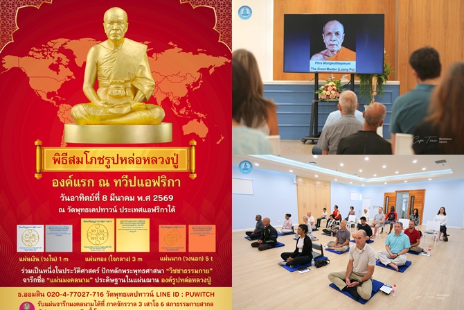 “การทำงานในสังคมพหุวัฒนธรรมของเมืองเคปทาวน์ ทำให้ชาวแอฟริกาได้สัมผัสหลักเมตตา ความกรุณา และสันติ ผ่านการปฏิบัติสมาธิ ฟังธรรม ส่งผลให้เกิดความเข้าใจในพระพุทธศาสนามากขึ้น ดังนั้น จึงขอเชิญพุทธศาสนิกชนทั่วโลกมาร่วมเป็นหนึ่งในการสร้างศูนย์กลางแห่งสันติสุข สร้างวัดพุทธเคปทาวน์ให้เป็นแสงสว่างกลางนครเคปทาวน์ เพื่อประโยชน์แก่ชาวไทย ชาวแอฟริกา และผู้แสวงหาธรรมทั่วโลก ในพิธีสมโภชรูปหล่อ พระมงคลเทพมุนี (สด จนฺทสโร) องค์แรกในทวีปแอฟริกา ซึ่งจัดขึ้นวันที่ 8 มีนาคม พ.ศ. 2569 โดยติดต่อสอบการร่วมบุญที่ โทร. 081-401-7191 และ 090-989-8275 หรือติดตามข่าวสารงานบุญวัดพุทธเคปทาวน์ได้ที่ Facebook วัดพุทธเคปทาวน์ สาธารณรัฐแอฟริกาใต้ ทวีปแอฟริกา : https://www.facebook.com/wad.phuthth.khep.thawn.satharnrath.x.fr และ เว็บไซต์ Cape Town Meditation Center” พระภูวิชญ์กล่าว