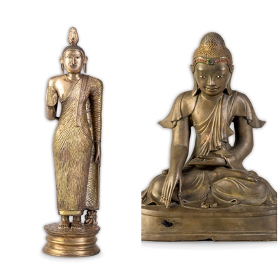 ๙. พระพุทธรูปยืนปางแสดงธรรม ศิลปะลังกา แบบสิริวัฒนบุรีหรือแคนดี พุทธศตวรรษที่ ๒๒ - ๒๔