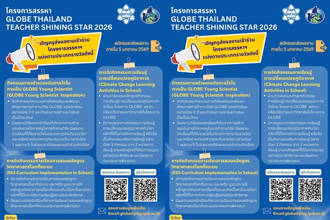 สสวท. เชิญสมัคร GLOBE Thailand Teacher Shining Star 2026