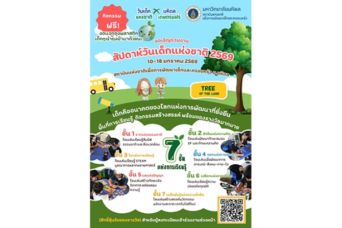 สัปดาห์วันเด็กแห่งชาติ + มหิดลเกษตรแฟร์ 2569”ระหว่างวันที่ 10–18 มกราคม 2569