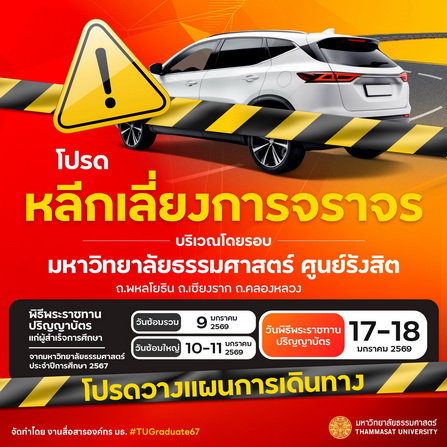 มหาวิทยาลัยธรรมศาสตร์ ขอประกาศแจ้งหลีกเลี่ยงการจราจร บริเวณโดยรอบมหาวิทยาลั