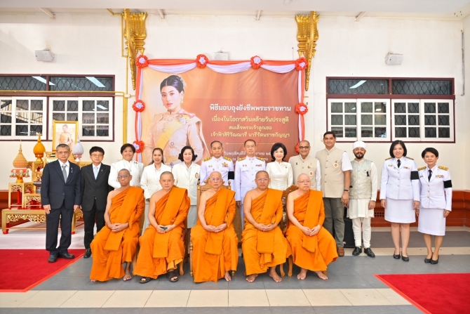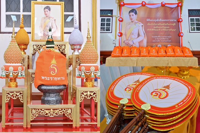 ปลัดกระทรวงวัฒนธรรม กล่าวต่อไปว่า “นอกจากการเจริญพระพุทธมนต์ด้วยการสวดพระปริตรของพระสงฆ์ 10 รูปแล้ว ยังมีการมอบถุงยังชีพ เพื่อถวายพระกุศลแด่พระองค์ท่าน ซึ่งถุงยังชีพดังกล่าวพระองค์ท่านทรงพระราชทานมา เพื่อให้เชิญมอบแก่ผู้สูงอายุ ผู้ด้อยโอกาส ผู้พิการ และผู้ป่วยติดเตียง ที่อาศัยอยู่ในชุมชนวัดอาวุธวิกสิตาราม โดยผู้นำชุมชนและสำนักงานเขตบางพลัด เป็นผู้คัดเลือกมาจำนวน 40 คน ทั้งการพระราชทานพระอนุญาต เชิญอักษรพระนามาภิไธย ส.ร.ประดิษฐานบนพัดรอง จำนวน 11 ด้าม และประดิษฐานบนย่าม จำนวน 11 ใบ เพื่อถวายประธานสงฆ์และพระสงฆ์เจริญพระพุทธมนต์ถวายพระกุศล นับว่าเป็นกุศลมงคลที่พวกเราชาวไทยจะได้น้อมเกล้าน้อมกระหม่อมถวายพระกุศล เนื่องในโอกาสวันคล้ายวันประสูติของพระองค์ท่าน ซี่งปีนี้ตรงกับวันพฤหัสบดีที่ 8 มกราคม 2569”