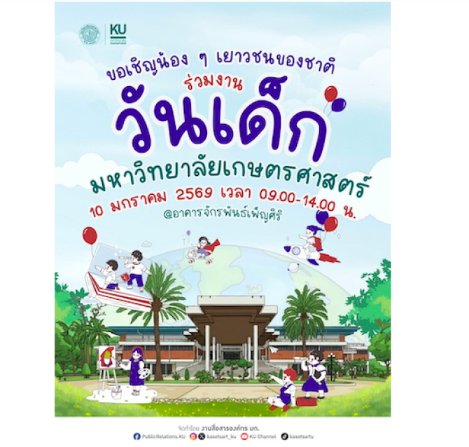 - งานวันเด็กมหาวิทยาลัยเกษตรศาสตร์ 2569 สนุก ได้ความรู้และของรางวัล 10 ม.ค. 2569