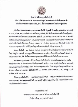 ทั้งนี้สมัชชาสงฆ์ไทยในสหรัฐอเมริกาได้ออกแถลงการณ์ความว่า