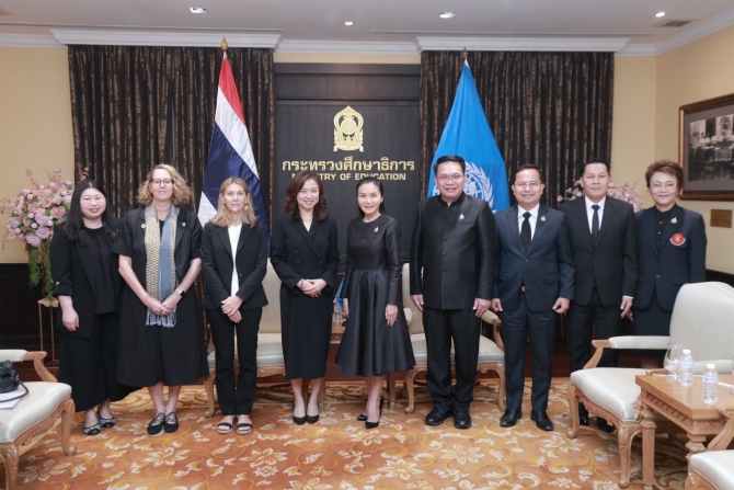 เมื่อวันที่ 14 มกราคม 2569 เวลา 10.00 น. ศ.ดร.นฤมล ภิญโญสินวัฒน์ รัฐมนตรีว่าการกระทรวงศึกษาธิการ หารือความร่วมมือการยกระดับการจัดการศึกษาเพื่อสิ่งแวดล้อม (Greening Education) และการพัฒนาศักยภาพบุคลากรทางการศึกษาไทย ร่วมกับ นางสาวซูฮย็อน คิม (Ms. Soohyun Kim) ผู้อำนวยการสำนักงานยูเนสโกกรุงเทพฯ (UNESCO Bangkok) ณ ห้องดำรงราชานุภาพ อาคารราชวัลลภ กระทรวงศึกษาธิการ