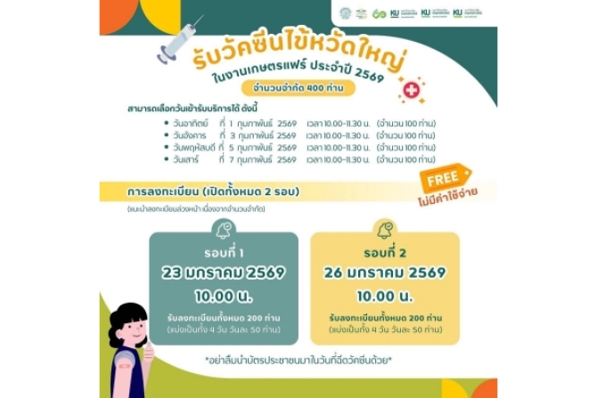 มก.ให้บริการฉีดวัคซีนไข้หวัดใหญ่ฟรี ในงานเกษตรแฟร์ 2569