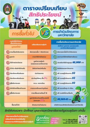 สาระสำคัญของโครงการนี้ คือการมอบสิทธิประโยชน์ที่ “ดีกว่าการซื้อรถจักรยานยนต์ทั่วไปในท้องตลาด” อย่างเห็นได้ชัด โดยเฉพาะเมื่อเปรียบเทียบด้านภาระค่าใช้จ่ายในระยะยาว การซื้อทั่วไปมักต้องแบกรับอัตราดอกเบี้ยตามตลาด ค่าใช้จ่ายแฝงด้านประกัน การบำรุงรักษา และค่าดำเนินการต่าง ๆ ขณะที่การเข้าร่วมโครงการผ่านมหาวิทยาลัยช่วยลดภาระเหล่านี้ได้อย่างเป็นรูปธรรม