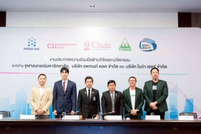 จุฬาลงกรณ์มหาวิทยาลัย ร่วมมือกับบริษัท โนว่า เฮลธ์ จำกัด บริษัทในเครือบริษัท ที.แมน ฟาร์มา ซูติคอล จำกัด (มหาชน) และบริษัท แพเท้นท์ ดอค จำกัด จัดงานประกาศความร่วมมือด้านวิ