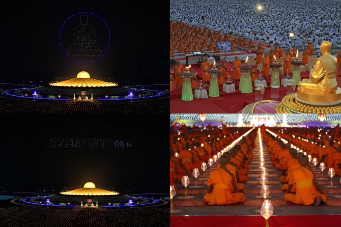 - บินโดรนแปรภาพบนท้องฟ้าส่งท้ายธรรมยาตรา ปีที่ 14 ณ วัดพระธรรมกาย 1 ก.พ. 2569