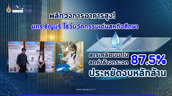 พลิกวงการอาคารสูง! มทร.ธัญบุรี โชว์นวัตกรรมเด่นผลงานนักศึกษาสหกิจศึกษาสารเคลือบนาโน ลดค่าล้างกระจก 87.5% ประหยัดงบหลักล้าน