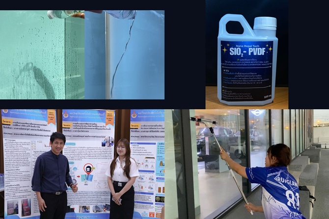นวัตกรรมชิ้นนี้ได้รับความร่วมมือและการสนับสนุนจากสถานประกอบการคือ ศูนย์นาโนเทคโนโลยีแห่งชาติ หรือ นาโนเทค และ บริษัท Nano Coating Tech โดยมี ดร.ธันยกร เมืองนาโพธิ์ เป็นที่ปรึกษาและผู้นิเทศงานสถานประกอบการ ซึ่งนวัตกรรมดังกล่าวได้รับการพัฒนาขึ้นเพื่อมุ่งแก้ปัญหางบประมาณการดูแลรักษาอาคารสูงที่ต้องทำความสะอาดกระจกบ่อยครั้ง ซึ่งมีค่าใช้จ่ายสูงและมีความเสี่ยงต่อผู้ปฏิบัติงาน ทีมผู้พัฒนาได้ประยุกต์ใช้เทคโนโลยีโซล-เจลสร้างสารเคลือบที่มีต้นทุนการผลิตต่ำแต่มีคุณสมบัติพิเศษในการไล่น้ำและสิ่งสกปรกได้ดีเยี่ยม โดยผลการทดสอบพบว่ามีมุมสัมผัสน้ำสูงถึง 108.6 องศา และคงความใสของกระจกได้ในระดับร้อยละ 91.1 ทั้งยังมีความทนทานต่อสภาพอากาศและการกัดกร่อนของสารเคมี