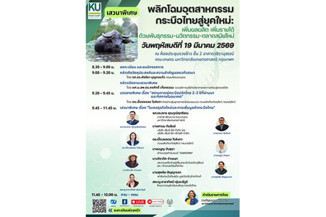 - มก. จัดเสวนาพิเศษ พลิกโฉมอุตสาหกรรมกระบือไทยสู่ยุคใหม่ 16 ก.พ. 2569