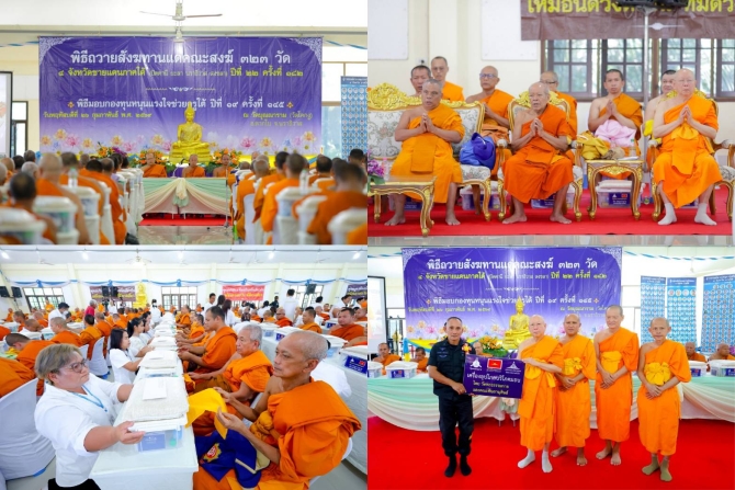 ทั้งนี้พิธีถวายสังฆทานแด่คณะสงฆ์ 323 วัด 4 จังหวัดชายแดนภาคใต้ จัดขึ้นโดยวัดพระธรรมกาย มูลนิธิธรรมกาย ร่วมกับพุทธบริษัท วัตถุประสงค์เพื่อถวายเป็นพุทธบูชา รักษาแสงธรรมไม่ให้ดับสูญไปจากดินแดนภาคใต้ พร้อมกับสร้างขวัญและกำลังใจแก่พุทธศาสนิกชนในพื้นที่ให้เข้มแข็งขึ้น จัดครั้งแรกเมื่อวันที่ 7 มิถุนายน พ.ศ. 2548 ณ วัดมุจลินทวาปีวิหาร จังหวัดปัตตานี ปัจจุบันจัดติดต่อกันเป็นปีที่ 22 ครั้งที่ 182 และจัดอย่างต่อเนื่องจนกว่าเหตุการณ์จะสงบ ส่วนกองทุนหนุนแรงใจช่วยครูใต้ มอบแล้ว 41,477 กองทุน ข้าวสารอาหารแห้งมอบช่วยเหลือพระสงฆ์เจ้าหน้าที่ตำรวจ ทหาร ครู และประชาชน ในพื้นที่เสี่ยงภัยกว่า 6,000 ตัน