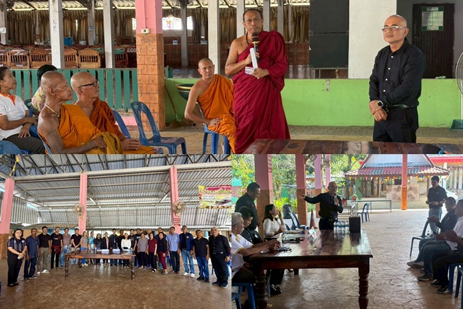 นิติศาสตร์ มรภ.สุราษฎร์ฯ จับมือ ผอ.ศูนย์เดินสำรวจฯ ลงพื้นที่วัดหัวสวน ปูพรมให้ความรู้การออกโฉนดที่ดินเพื่อศาสนสถานและชุมชนตำบลหัวเตย