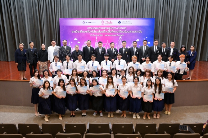 นิสิตจุฬาฯ และนักศึกษามหาวิทยาลัยมหิดลจำนวนทั้งสิ้น 40 คนที่ผ่านการเรียนวิชา “ชุมชนสัมพันธ์และความยั่งยืนทางวัฒนธรรม” และวิชา “ชุมชนศึกษาเพื่อความยั่งยืน” รายวิชาศึกษาทั่วไปในภาคการศึกษาปลาย ปีการศึกษา 2568 โดยได้เรียนรู้ภาคสนามในพื้นที่จริง ณ จังหวัดน่าน ได้เข้ารับมอบเกียรติบัตรจากอธิการบดี ทั้งสองมหาวิทยาลัยซึ่งจัดขึ้นที่จุฬาลงกรณ์มหาวิทยาลัย เป็นภาพแห่งความสำเร็จที่น่าภาคภูมิใจจากโครงการความร่วมมือครั้งสำคัญระหว่างจุฬาลงกรณ์มหาวิทยาลัยและมหาวิทยาลัยมหิดลในด้านพันธกิจเพื่อสังคม (University Social Engagement) ซึ่งเป็นอีกบทบาทหลักของสองสถาบันอุดมศึกษาชั้นนำของประเทศ นอกเหนือจากพันธกิจด้านการเรียนการสอนและการผลิตบัณฑิตที่มีคุณภาพสู่สังคม