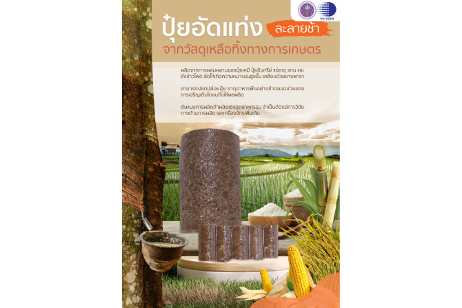 วว. พัฒนาปุ๋ยอัดแท่งละลายช้า เพิ่มมูลค่าวัสดุเหลือทิ้งทางการเกษตร