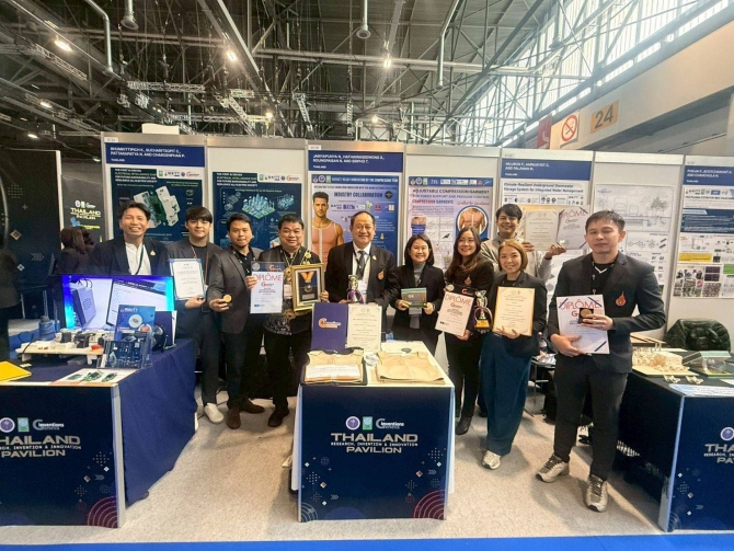 เมื่อวันที่ 25 มีนาคม 2569 รศ.ดร.สมหมาย ผิวสอาด อธิการบดี มหาวิทยาลัยเทคโนโลยีราชมงคลธัญบุรี (มทร.ธัญบุรี) กล่าวว่า จากการที่มทร.ธัญบุรีมุ่งมั่นที่จะส่งเสริมอาจารย์ นักวิจัย และนักศึกษาของมหาวิทยาลัย พัฒนางานวิจัยให้สอดคล้องกับแนวทางการพัฒนาของประเทศ และสามารถนำไปใช้ประโยชน์ได้จริง ส่งผลให้งานวิจัยได้รับรางวัลทั้งในประเทศและต่างประเทศเป็นจำนวนมาก ล่าสุดมทร.ธัญบุรีได้นำงานวิจัย 4 ผลงาน ที่ได้ผ่านการคัดเลือกจากสำนักงานวิจัยแห่งชาติ (วช.) เข้าร่วมประกวดและจัดแสดงนิทรรศการงาน“The 51st International Exhibition of Inventions Geneva” ณ นครเจนีวา สมาพันธรัฐสวิส มีผลงานเข้าร่วมมากว่า 1,000 ผลงานจาก 30 ประเทศทั่วโลก ซึ่งการเข้าร่วมงานในครั้งนี้ มทร.ธัญบุรีไดรับรางวัลทั้งสิ้น 10 รางวัล โดยมี 4 ผลงานที่ได้รับรางวัลโดดเด่น ประกอบด้วย