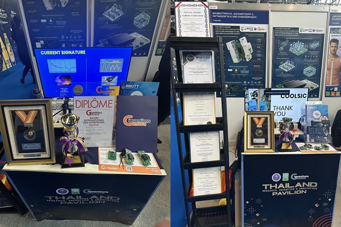 ผลงานนวัตกรรม The first AI Driven Electrical Intelligence Chip for future sustainability and resilience all-electric society โดย ศ.ดร.กฤษณ์ชนม์ ภูมิกิตติพิชญ์ นายชัชชม สุจริตโศภิต นายณภัทร ภัทรปรัชญา และนายพัศพงศ์ เจริญพันธ์ คณะวิศวกรรมศาสตร์ ได้รับรางวัล Special Prize on Stage from Taiwan invention association, Silver Medal และ NRCT Special Award สำหรับจุดเด่นของนวัตกรรมชิ้นนี้เป็นเทคโนโลยีอัจฉริยะที่ยกระดับระบบไฟฟ้าแห่งอนาคต โดยสามารถวิเคราะห์การใช้ไฟฟ้าได้จากจุดเดียว (NILM) ลดต้นทุนและความซับซ้อน ใช้ AI วิเคราะห์และตรวจจับความผิดปกติแบบเรียลไทม์ เก็บข้อมูลความละเอียดสูงระดับ 1 ล้านครั้ง/วินาที รวมถึงสนับสนุนการใช้พลังงานอย่างมีประสิทธิภาพ และลดคาร์บอนสู่ Net Zero