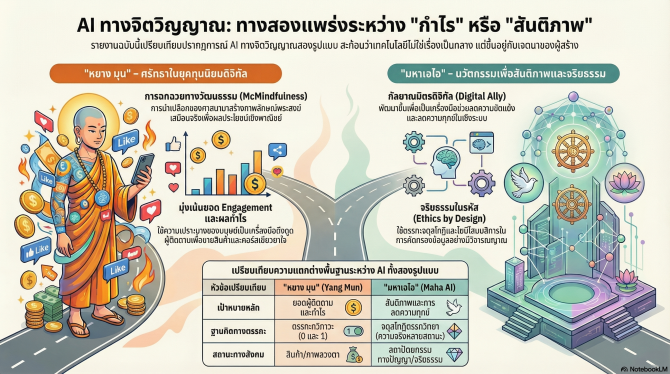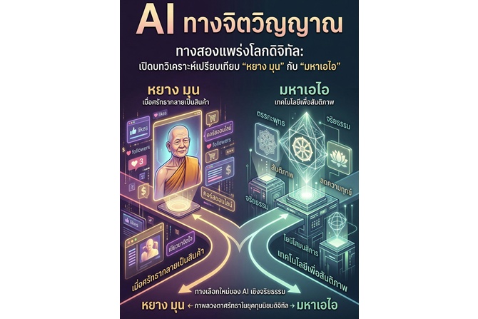 รายงานวิเคราะห์เชิงลึกชี้ ปรากฏการณ์ AI อินฟลูเอนเซอร์ทางศาสนาอย่าง “หยาง มุน” สะท้อนการแสวงหากำไรจากความเปราะบางของมนุษย์ ขณะที่ “มหาเอไอ” โมเดลพุทธปัญญาประดิษฐ์ เสนอทางเลือกใหม่ของเทคโนโลยีที่ยึดจริยธรรมและสันติภาพเป็นศูนย์กลาง