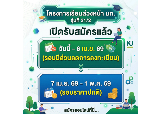 - มก. เปิดเรียนล่วงหน้า รุ่น 21/2 3 เม.ย. 2569