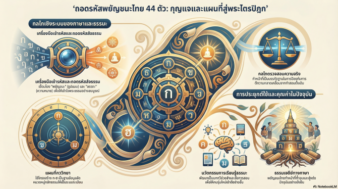 แวดวงวิชาการพุทธศาสนาเปิดมุมมองใหม่ต่อการศึกษาธรรมะ ผ่านการวิเคราะห์ความสัมพันธ์ระหว่าง “พยัญชนะภาษาไทย 44 ตัว” กับหลักธรรมในพระไตรปิฎก โดยชี้ว่าระบบอักษรไทยมิได้เป็นเพียงเครื่องมือทางภาษา แต่ทำหน้าที่เป็นโครงสร้างเชิงระบบในการ “เข้ารหัส” และ “ถอดรหัส” สัจธรรมทางพุทธศาสนา
