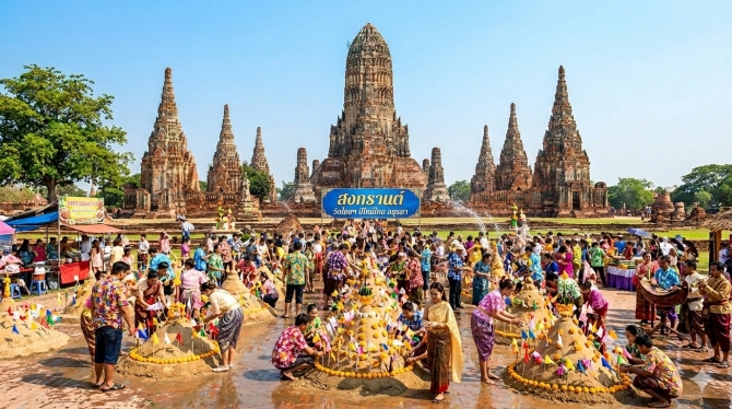 กรมศิลปากร กระทรวงวัฒนธรรม ขอเชิญร่วมงาน “สงกรานต์วัดไชยฯ ปีใหม่ไทยอยุธยา” สืบสานประเพณีสงกรานต์วิถีไทย สรงน้ำพระ ก่อพระเจดีย์ทราย เล่นสาดน้ำตามวิถีไทย ในบรรยากาศงานวัด ย้อนยุค ระหว่างวันที่ 9 – 13 เมษายน 2569 ณ โบราณสถานวัดไชยวัฒนาราม อุทยานประวัติศาสตร์พระนครศรี