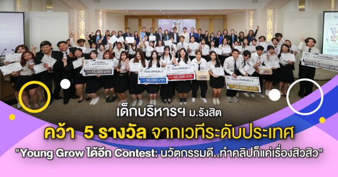 นศ.บริหารฯ ม.รังสิต คว้า 5 รางวัล "Young Grow ได้อีก Contest: นวัตกรรมดี..ทำคลิปก็แค่เรื่