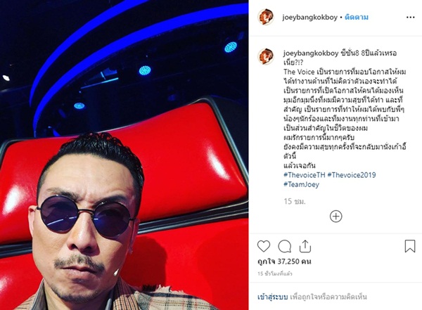 ยังคงความเก๋าตัวพ่อ เฮียโจ้ โจอี้บอย ที่นั่งเก้าอี้โค้ชเลือกลูกทีมมาแล้วถึง 8 ปีซ้อน ล่าสุด “เดอะ วอยซ์ 2019” เพิ่งถ่ายรอบบลายด์ออดิชั่นไปหมาดๆ งานนี้ เฮียโจ้ ทำซึ้ง เขียนแคปชั่นบอกรักรายการ “เดอะ วอยซ์” ผ่านอินสตาแกรมของตัวเอง ขอบคุณรายการที่มอบโอกาสในการเป็นโค้ช แถม! ตบท้ายประโยคด้วยว่า...มีความสุขทุกครั้งที่กลับมานั่งเก้าอี้ตัวนี้ ส่วนปีนี้จะมีอะไรสนุกมาให้เซอร์ไพร์สอีกบ้าง ติดตามกันให้ดีๆ แล้วเจอกันกับซีซั่นใหม่ 16 ก.ย.นี้แน่นอน ทุกวันจันทร์ ที่เก่า พีพีทีวี ช่อง 36 เวลาเดิม 20.15 น. จ้า!