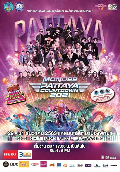 ใกล้เวลาเข้ามาทุกทีแล้ว สำหรับเทศกาลแห่งความสุขส่งท้ายปีเก่าต้อนรับปีใหม่ โดย เมืองพัทยา, องค์การบริหารส่วนจังหวัดชลบุรี และ สถานีโทรทัศน์ช่อง MONO29 (โมโน ทเวนตี้ไนน์) ในเครือ โมโน เน็กซ์ ที่พร้อมจัดงานใหญ่เฉลิมฉลอง "MONO29 PATTAYA COUNTDOWN 2021" (โมโน ทเวนตี้ไนน์ พัทยา เคาท์ดาวน์ 2021) เพื่อเป็นการส่งเสริมและเผยแพร่การท่องเที่ยวเมืองพัทยา ที่จะมีขึ้นระหว่างวันที่ 29-31 ธันวาคม 2563 นี้ ณ ท่าเทียบเรือท่องเที่ยวเมืองพัทยา (แหลมบาลีฮาย) จังหวัดชลบุรี พร้อมทัพศิลปินสุดฮอตร่วมมอบความสุข