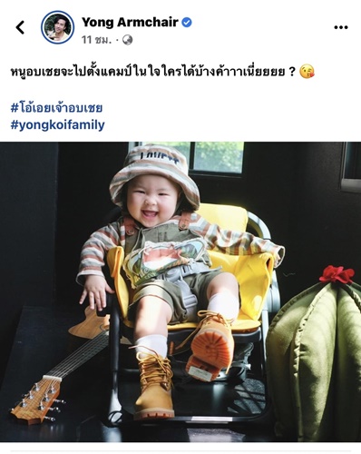 ยิ่งโตยิ่งน่ารักจนคว้าใจของพี่ป้าน้าอาไปหมดแล้ว หนูอบเชย ลูกสาวของพ่อโย่งแม่ก้อย ที่เผลอแป๊ปเดียว !! ตอนนี้อายุกว่า 6 เดือนแล้ว แถมพัฒนาการยังดีเยี่ยม ความอารมณ์ดีมาเป็นที่หนึ่ง ที่สำคัญยังฉายแววนางแบบมาตั้งแต่เล็กๆ อย่างล่าสุด พ่อโย่ง ได้โพสต์ภาพ น้องอบเชย ในชุดตั้งแคมป์ที่บอกได้คำเดียวว่าช่างน่ารักเกินต้านจริงๆ พร้อมกับแคปชั่นแบบนี้ หนูอบเชยจะไปตั้งแคมป์ในใจใครได้บ้างค้าาาเนี่ยยยย ? #โอ้เอยเจ้าอบเชย #yongkoifamily