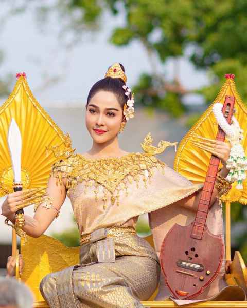 สวย สง่างาม "จูน นาตาชา" นำขบวนแห่นางสงกรานต์ ปี 2566 ร่วมสืบสานประเพณีไทย ณ โบราณสถานแห่งชาติ