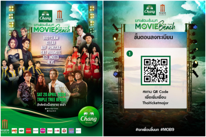“น้ำแร่ธรรมชาติตราช้าง” ร่วมมือความสนุกกับ บริษัท เมเจอร์ซีนีเพล็กซ์ กรุ้ป จำกัด พร้อมพาเพื่อนไปสนุกยกก๊วน ทะลุองศาซัมเมอร์ ชมภาพยนตร์ และกระโดดให้สุดตัวในงาน “Movie On The Beach ครั้งที่ 9” ตอน...ยกเพื่อนขึ้นบก พบกับ คอนเสิร์ตสุดฟิน ริมชายหาดเตรียมตัวมาเช็คอินได้ที่ Triple Tree Beach Resort (ใกล้ครัวเม็ดทราย) ชะอำ จังหวัดเพชรบุรี ในวันเสาร์ที่ 20 เมษายน 2024 เปิดเข้าพื้นที่ ตั้งแต่เวลา 15.00 น. เป็นต้นไป