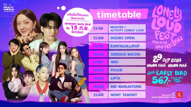 ไม่ไปไม่ได้แล้ว ! เปิดไลน์อัพ “LONELY LOUD FEST” อัดแน่นศิลปินคุณภาพ จัดเต็มไม่หยุดเพื่อคนขี้เหงากว่า 6 ชั่วโมง