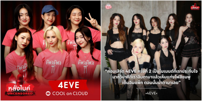 นอกจากนี้ ยังมีเรื่องราวที่สาว ๆ ได้มาเปิดใจให้กันและกันฟัง ผ่านรายการหลังไมค์ UNCENSORED ที่ใครได้ดูก็จะรู้ได้เลยว่าสาว ๆ ทุกคนรัก และพยายามในการเป็น 4EVE กันมากแค่ไหน ติดตามรับชมได้ผ่าน YouTube : COOL on CLOUD >> https://youtu.be/AEncwCH0mtI