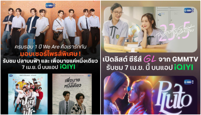 ซัมเมอร์นี้ไม่เหงาอีกต่อไป! iQIYI (อ้ายฉีอี้) จัดเต็มขนทัพซีรีส์ BL – GL ชื่อดังจาก GMMTV หลากหลายรสชาติ ครบทุกรูปแบบความรัก พร้อมเสิร์ฟส่งตรงถึงหน้าจอแล้ววันนี้