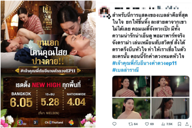 “เจมส์-เบลล่า” อินเนอร์ทะลุจอ “เจ้าคุณพี่กับอีนางคำดวง” เรตติ้งพุ่ง NEW HIGH ทุกพื้นที่!!