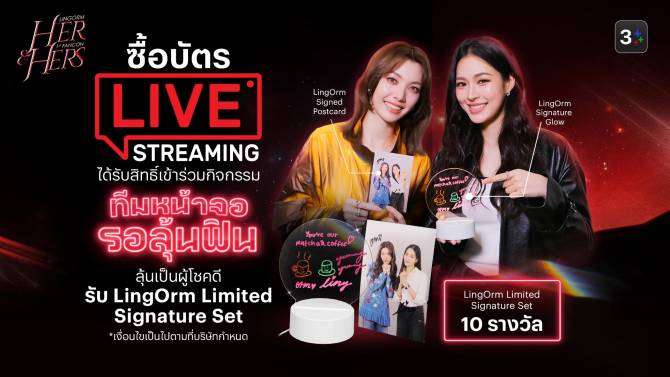 สำหรับสายออนไลน์ทีมหน้าจอที่ อยากจอยไปพร้อมกัน เปิดจำหน่ายบัตร Live Streaming แล้ววันนี้ - 8 พฤศจิกายน 2568 เวลา 18.00 น. ราคาบัตรสำหรับสมาชิก 3Plus Premium เพียง 799 บาท สมาชิกทั่วไป 1,099 บาท บัตรจำหน่ ายเฉพาะทางเว็บไซต์ 3Plus https://bit.ly/ LiveTicketHerAndHers สามารถรับชมได้ทั้งทางแอปพลิ เคชัน 3Plus และเว็บไซต์ พร้อมสรุปเนื้อหาภาษาอังกฤษ ( English wrap up) ตลอดการถ่ายทอดสด สำหรับแฟนอินเตอร์ทั่วโลก