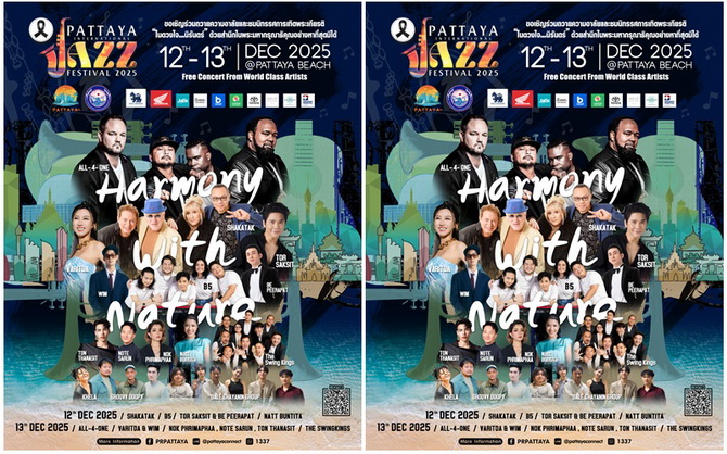 “เมืองพัทยา และ อบจ.ชลบุรี” ร่วมจัดงานเทศกาลดนตรีแจ๊สเมืองพัทยา “Pattaya International Jazz Festival 2025” ด้วยนโยบาย "Better Pattaya" ผลักดันพัทยาให้เป็น "World Class Event City" หรือเมืองแห่งเทศกาลระดับโลก ทำให้พัทยาเป็นเมืองที่มีเทศกาลนานาชาติและงานประเพณีให้เที่ยวได้ทุกเดือน และงานไฮไลต์สำคัญที่กำลังจะมาถึง คืองาน Pattaya International Jazz Festival 2025 ที่เมืองพัทยา และ อบจ.ชลบุรี ร่วมใจกันจัดต่อเนื่องเป็นปีที่ 3 แล้ว งานในปีนี้จัดยิ่งใหญ่กว่าเดิม ภายใต้ธีม “JAZZ HARMONY WITH NATURE – แจ๊ส เสน่ห์เสียงเพลงเคียงข้างธรรมชาติ” ฟรีคอนเสิร์ตในเมืองไทยของศิลปินแจ๊สระดับโลกวง ALL-4-ONE และวง SHAKATAK พร้อมด้วยศิลปินแจ๊สนานาชาติและศิลปินไทยเข้าร่วมงานอย่างคับคั่ง ยกระดับเมืองพัทยาสู่ระดับโลก พลาดไม่ได้ วันที่ 12 - 13 ธันวาคม 2568 ตั้งแต่เวลา 16.00 – 24.00 น. ณ บริเวณริมชายหาดพัทยากลาง จ.ชลบุรี
