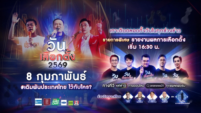 8 ก.พ. นี้ “สำนักข่าววันนิวส์” ชวนเกาะติดการเลือกตั้งตลอดทั้งวัน พร้อมรายการพิเศษ วันเลือกตั้ง 2569 #เดิมพันประเทศไทย