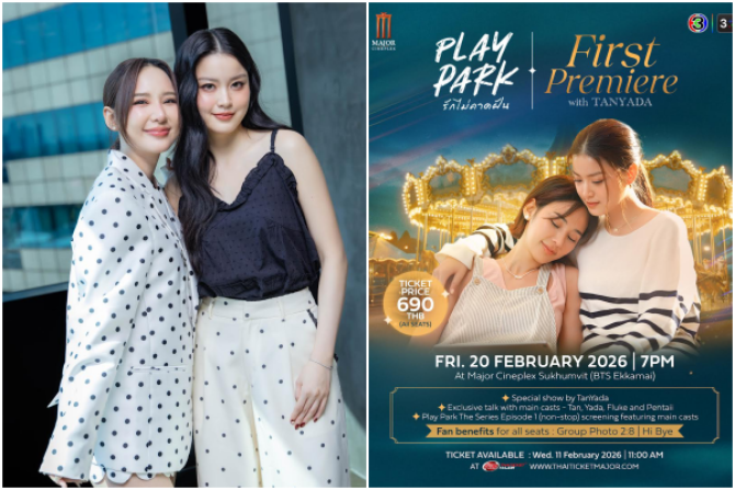 งานนี้ไม่ได้มีแค่ดูซีรีส์ เพราะแฟน ๆ จะได้ชมโชว์พิเศษจาก แทน-ญดา พร้อมร่วมพูดคุยแบบใกล้ชิดกับนั กแสดงนำ แถมยังมี Fan Benefit สำหรับทุกคน บัตรราคา 690 บาท (ทุกที่นั่ง) เปิดจำหน่ายบัตรวันพุธที่ 11 กุมภาพันธ์ 2569 เวลา 11.00 น. เป็นต้นไปทาง www.thaiticketmajor.com และThaiticketmajor ทุกสาขา