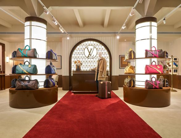 ส่วน Noé Bar รังสรรค์ในบรรยากาศอบอุ่น เพื่อยกย่องเรื่องราวต้นกำเนิดของดีไซน์กระเป๋า Noé ที่ออกแบบในปี 1932 ตามคำขอของผู้ผลิตแชมเปญ เพื่อใช้บรรจุแชมเปญ 5 ขวด โดยจัดวางตั้ง 4 ขวด และอีก 1 ขวดจัดวางคว่ำไว้ตรงกลางอย่างสมดุล กระเป๋า Noé ผลิตจากหนังอ่อนนุ่ม ฐานทรงโค้งมน และเชือกผูกอันเป็นเอกลักษณ์ สะท้อนศักยภาพด้านงานออกแบบเหนือกาลเวลาของหลุยส์ วิตตอง ในการแปรเปลี่ยนฟังก์ชันการใช้งานให้กลายเป็นรูปทรงคลาสสิก